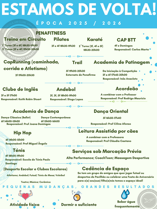 O Desporto Escolar é gratuito. Os Clubes Escolares (Teatro, Cerâmica e Música) são o valor de 5,00€ por mês.